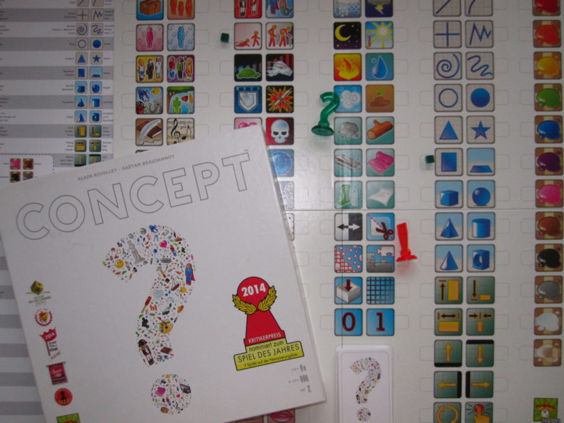 Das Erklären von Begriffen mit Hilfe von Wörtern, pantomimischen Darstellungen oder eigenen Zeichnungen ist bekannt. Das Spiel “Concept” liefert nun eine neue Art des Beschreibens und Ratens. 130 Piktrogramme stellen die Welt um uns herum dar, zum Beispiel Farben, Formen, Adjektive und vieles mehr. Durch die Kombination verschiedener Bildchen entstehen neue Begriffe und sogar Sprichwörter. Anika hat das Spiel für euch gecheckt.