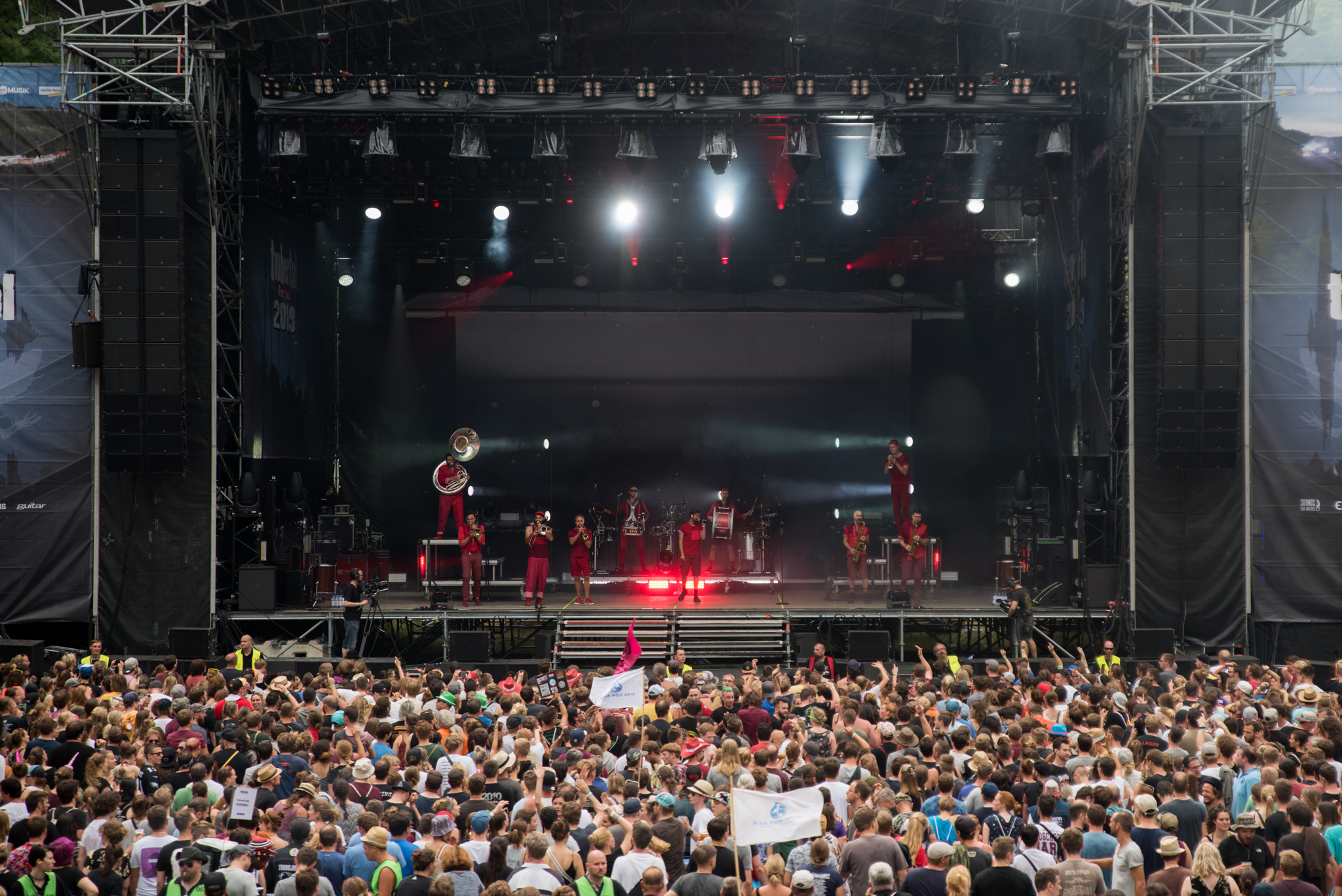 Als erste Band auf dem Taubertal 2019 hat Moop Mama die Mainstage eröffent. Julian hat Alt-Saxophonist Johannes und Posaunist Jan nach ihrem Auftritt getroffen und über das Festivalleben, den heiligen Vorhang im Tourbus und ihre musikalische Wurzeln gequatsch.