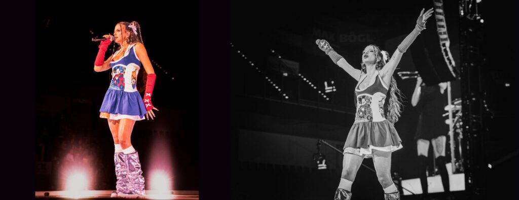 Wut, Tanz und pure Ekstase – kaum verklang der letzte Ton, drehte Nina das Tempo wieder auf. „Rage Girl“, „Fahr zur Hölle“ und „80qm“ ließen die Arena beben. Gemeinsam mit ihren Tänzer:innen sprintete sie über die Bühne, wechselte zwischen den Ebenen und brachte das Publikum mit jeder Bewegung zum Mitspringen. Es war eine perfekte Mischung aus Choreografie und Spontaneität – es wirkte kraftvoll, aber nie einstudiert. Jeder Song war ein neues Kapitel zwischen Aggression, Freude und absoluter Freiheit.
