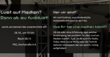 Lust auf Medien? Dann seid Ihr bei uns genau richtig! Schaut doch mal bei unserem Kick-Off am 07.05. vorbei. Dort erfahrt ihr, was wir bei funklust machen.